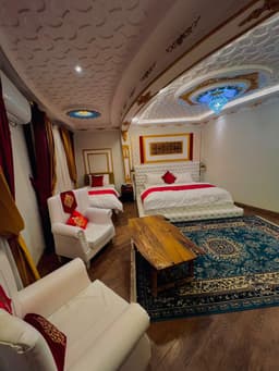 This comfortable and well-furnished room is ideal for relaxation, featuring a queen-sized bed and a spacious layout designed for a peaceful stay. Guests can unwind while enjoying beautiful views of the mountains, city, and nearby landmarks from the private balcony or terrace, adding to a calm and memorable experience.