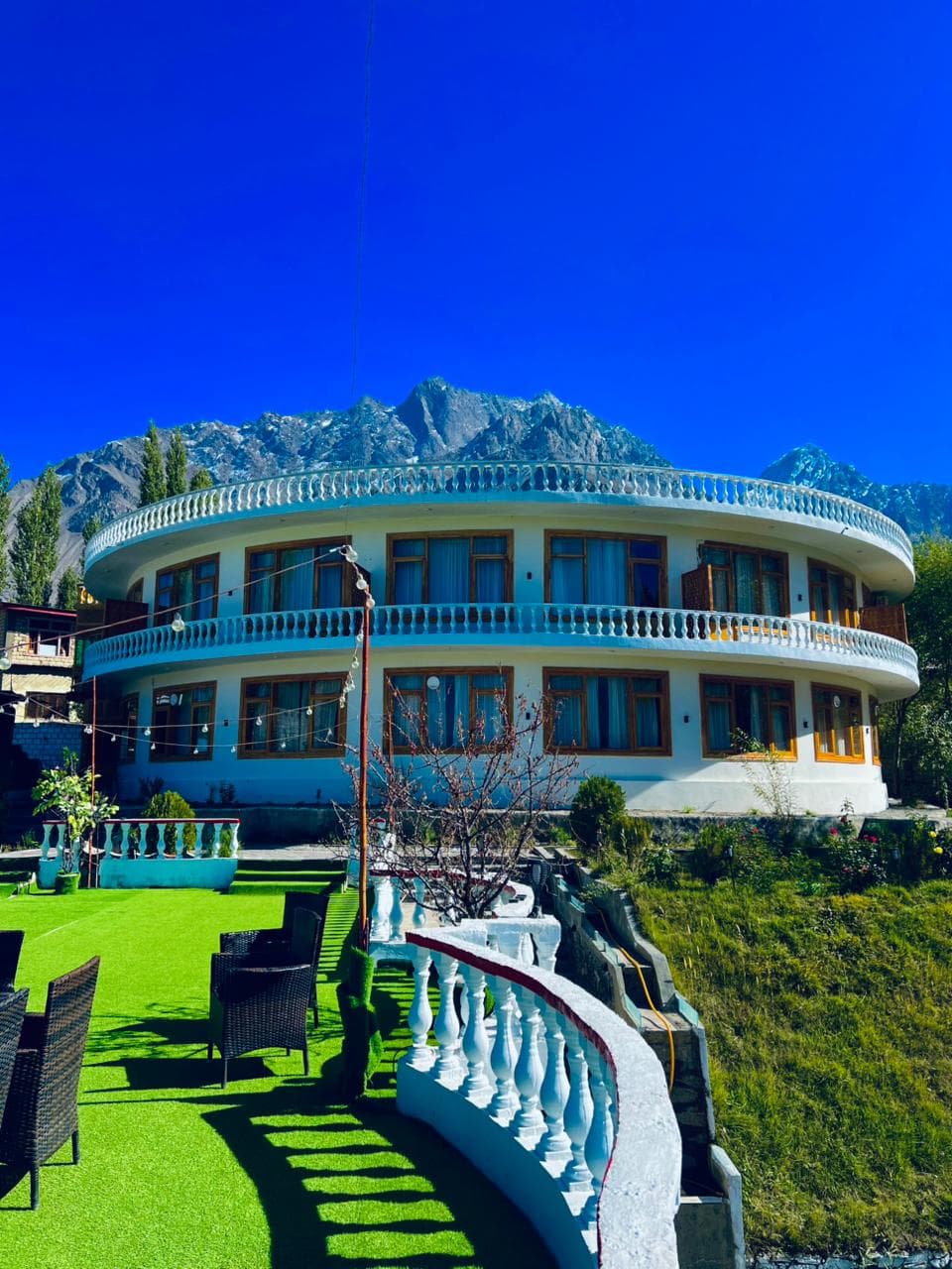 The room also includes a private bathroom equipped with a bathtub, shower, and toilet, so you can choose between a quick refresh or a long, relaxing bath. Essential toiletries are provided, along with fresh towels, clean linens, and toilet paper to keep things hassle-free. For everyday comfort and convenience, you’ll have a desk, slippers, a fan to keep the room airy, wake-up service for early plans, and a wardrobe or closet with a clothes rack to store your belongings neatly. Overall, it’s a practical yet elegant choice for a relaxing and memorable stay in Skardu.